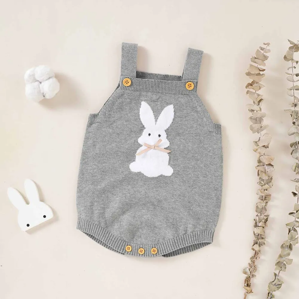Knit Bunny Baby Overall with Bow