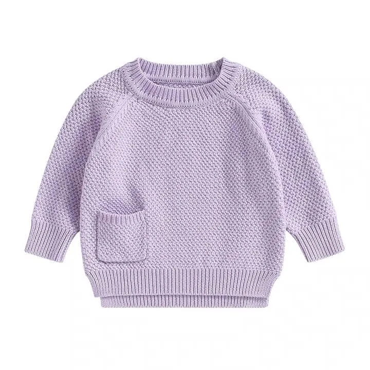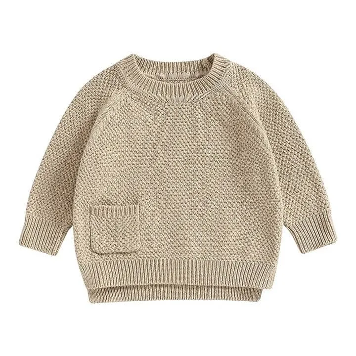 Solid Pocket Knitted Baby Sweater